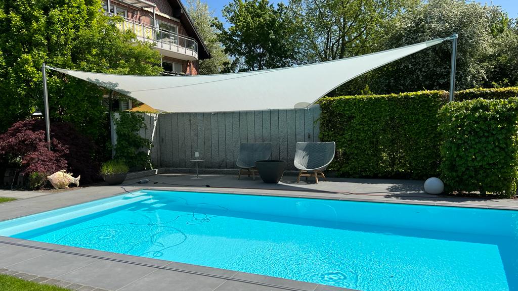 Unter Ihrem Pergoladach aus Glas oder Lichtstegplatten staut sich die Wärme. Die wirkungsvollste Beschattung ist von außen (z.B. Wintergartenmarkisen), aber nicht überall möglich. Eine preiswerte Alternative ist die Beschattung von innen. Wir bieten hier Lösungen nach Maß an, können ganze Flächen oder einzelne Felder zwischen den Dachsparren beschatten.