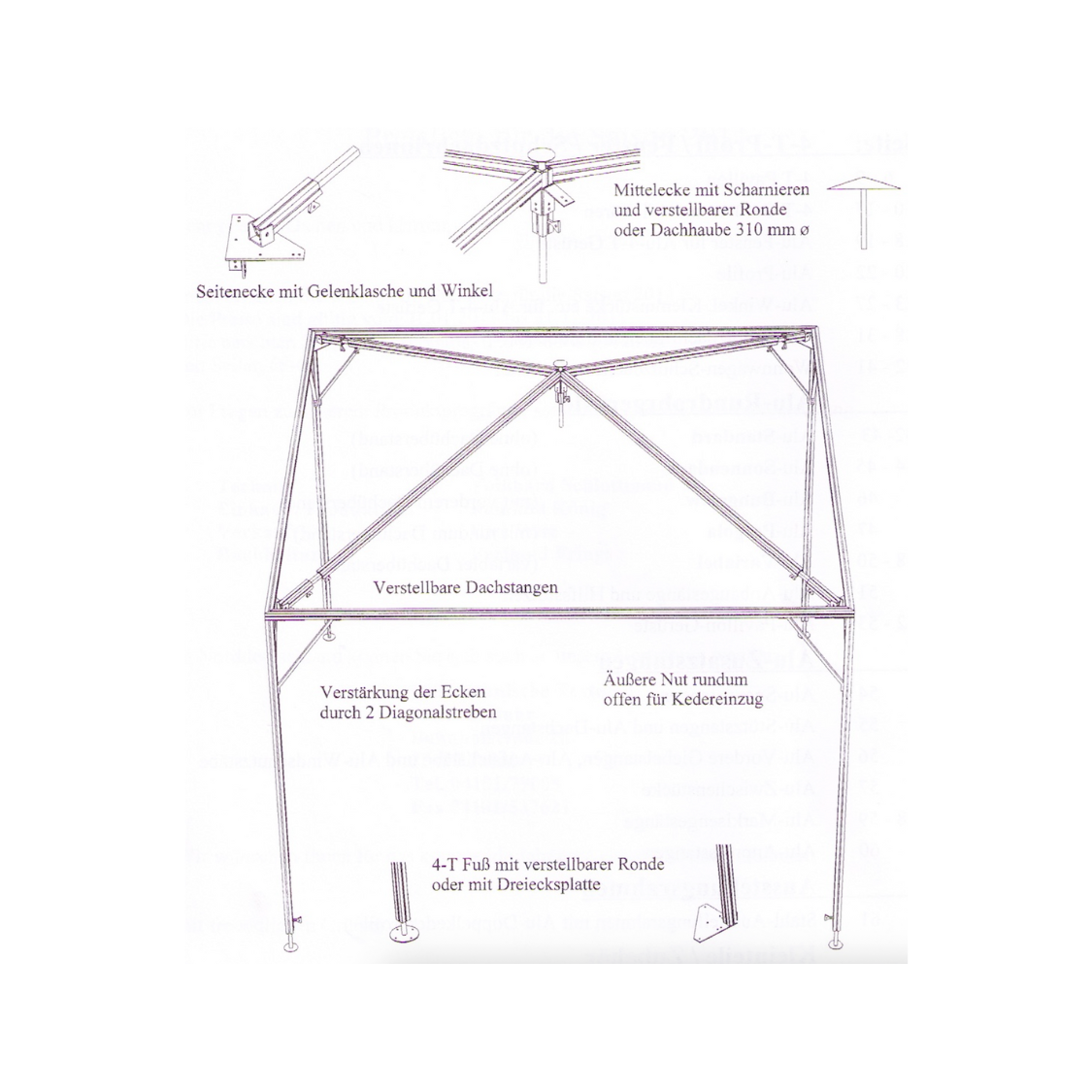 | Seitenwand-Abspannung | Fuß-Spannrohre 28/25 × 1 mm |
